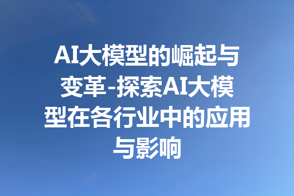 参考文章:如何用ChatGPT轻松写作-掌握写作技巧,让创作变得简单本文标题:AI大模型的崛起与变革-探索AI大模型在各行业中的应用与影响