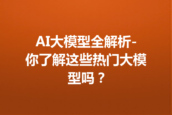 参考文章:AI助力论文写作-探索AI在学术论文中的应用与未来趋势本文标题:AI大模型全解析-你了解这些热门大模型吗?