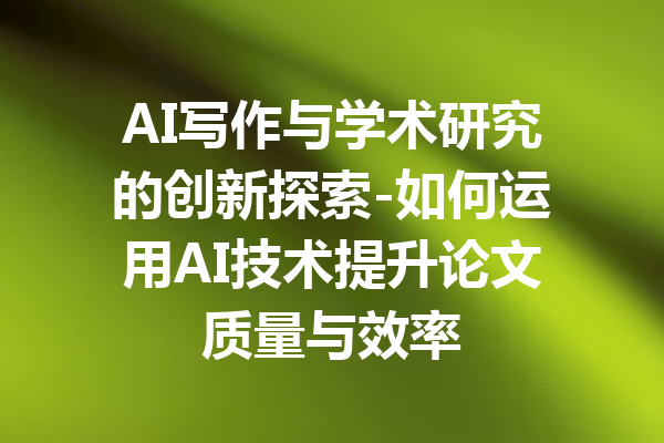 参考文章:AI写作助力学术研究-如何用AI提升论文质量与效率本文标题:AI写作与学术研究的创新探索-如何运用AI技术提升论文质量与效率