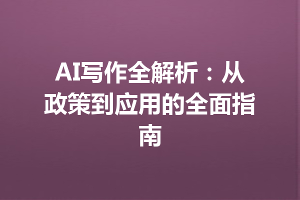 玩转AI写作的奇妙世界-解锁AI写作的无限可能性AI写作逐渐成为各行各业的重要工具。从政策制定到商业应用,AI写作不仅提高了效率,还改变了传统写作的方式。本文将对AI写作的相关政策、应用场景及发展进行深入解析。