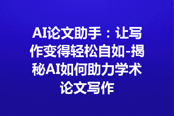 参考文章:用ChatGPT写作是否会被发现?- 破解AI写作的真相与误区本文标题:AI论文助手:让写作变得轻松自如-揭秘AI如何助力学术论文写作