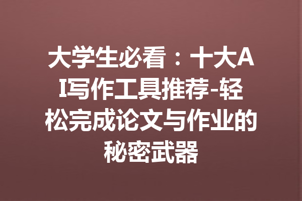 参考文章:AI写作全攻略-掌握AI写作技巧与应用的秘密本文标题:大学生必看:十大AI写作工具推荐-轻松完成论文与作业的秘密武器