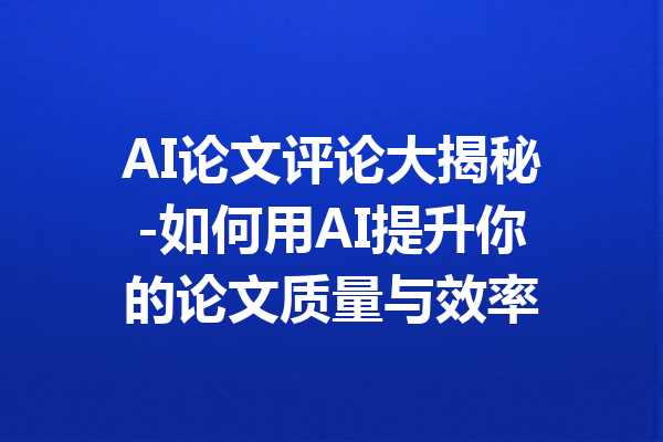 参考文章:AI写作全攻略:从基础课程到应用实践-掌握AI写作技能,提升创作效率本文标题:AI论文评论大揭秘-如何用AI提升你的论文质量与效率