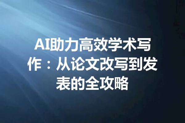 参考文章:AI论文研究的前沿探索-多维度解析AI在论文写作中的应用与挑战本文标题:AI助力高效学术写作:从论文改写到发表的全攻略