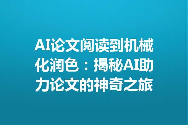 AI技术的迅猛发展,正在为学术界带来一场前所未有的变革。从ai论文阅读到机械化润色,AI不仅提高了论文写作的效率,还改变了我们对学术研究的看法。今天,我们就来一起探讨AI在论文创作过程中的各种应用,以及它们是如何帮助学者们实现更高质量的研究成果的。