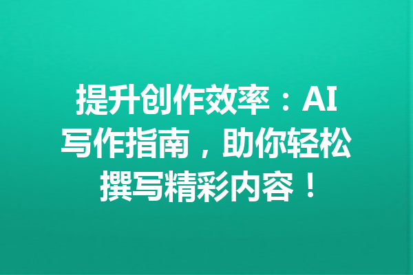 在现代社会中,内容创作的重要性不言而喻。无论是写博客、社交媒体帖文还是学术论文,优质的内容能够吸引读者,提升影响力。而人工智能(AI)的快速发展,为写作提供了新的可能性和工具。本文将为您介绍AI写作的技巧,帮助您轻松提升创作效率,实现精彩内容的生成。