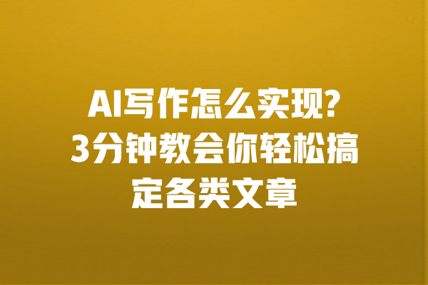 AI写作已经成为当下热门话题,无论是学生、职场人士还是内容创作者,都在探索如何利用AI工具提升写作效率。那么,AI写作到底是怎么实现的?今天,我们就用3分钟的时间,带你轻松掌握AI写作的核心技巧,让你快速搞定各类文章!