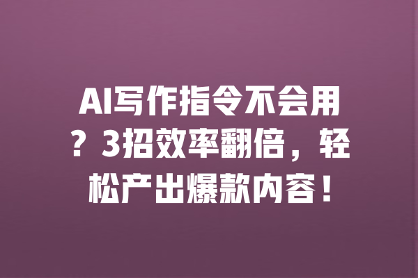 参考文章:ChatGPT中文实用指南 – 揭秘如何高效使用ChatGPT的中文功能本文标题:AI写作指令不会用?3招效率翻倍,轻松产出爆款内容!