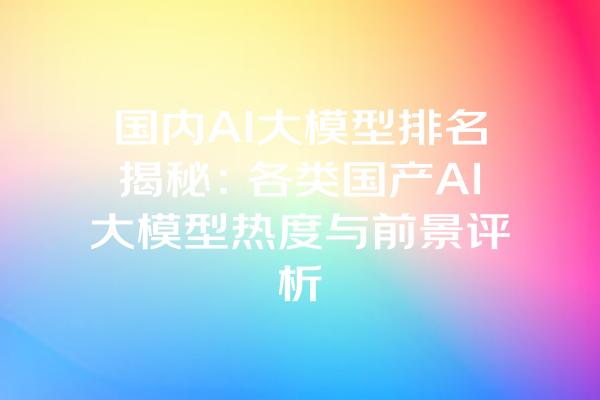 推荐故事:AI大模型是什么?全面解析目前国内各大AI大模型排名及应用前景!本文标题:国内AI大模型排名揭秘:各类国产AI大模型热度与前景评析