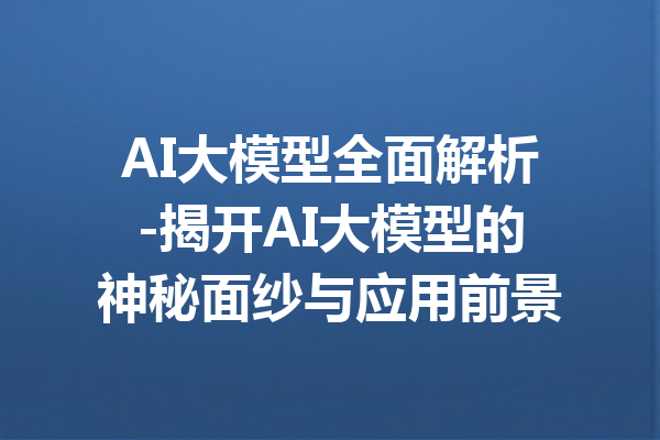 在科技高速发展的今天,人工智能(AI)已经逐渐成为我们生活不可或缺的一部分。AI大模型以其强大的处理能力和广泛的应用场景,吸引了越来越多的关注。本文将为您全面解析AI大模型,让我们一同揭开它的神秘面纱。