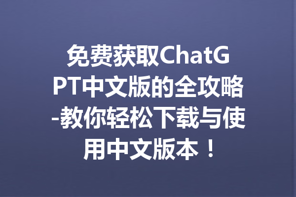 在当今数字化时代,人工智能逐渐走进了我们的日常生活。ChatGPT作为一种先进的对话AI技术,因其强大的语言理解能力和灵活的应对方式而备受关注。如果你正在寻找如何免费获取和使用ChatGPT的中文版本,那么这篇文章就是为你准备的全面指南。