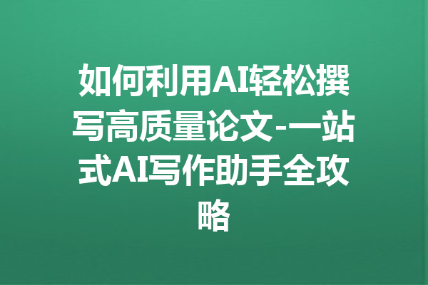 参考文章:AI论文全新攻略-快速掌握各类AI论文写作技巧本文标题:如何利用AI轻松撰写高质量论文-一站式AI写作助手全攻略