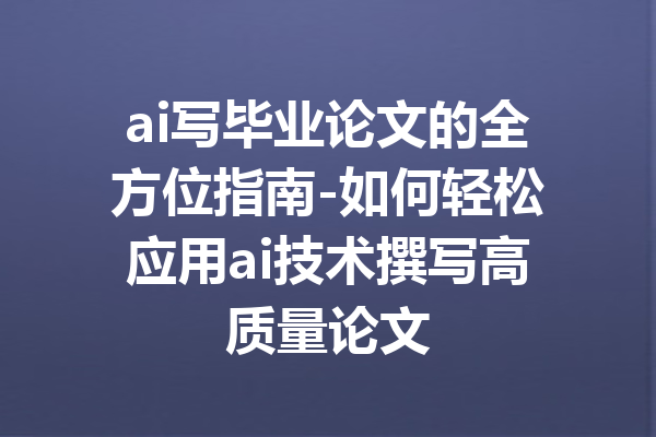 越来越多的大学生开始利用人工智能(AI)来帮助撰写毕业论文。使用ai工具不仅可以提高写作效率,还能优化文献综述、生成参考文献和检查论文的重复率。如何能有效地利用这些工具来撰写高质量的毕业论文呢?本文将为你提供一系列实用的与步骤,助你顺利完成毕业论文。