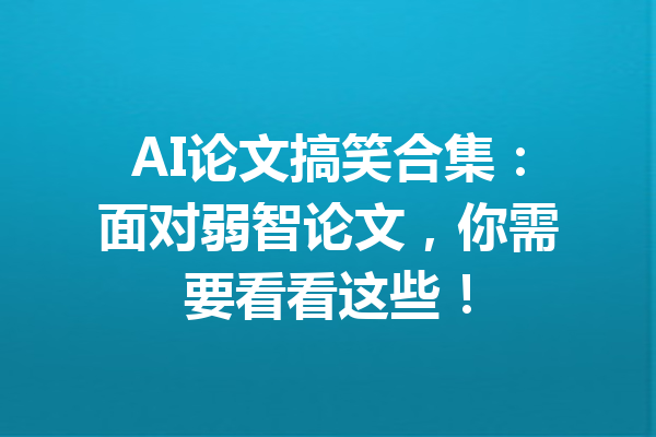 AI技术从一开始就吸引了无数人的关注,尤其是在学术领域的应用。随着AI的普及,”弱智论文”的出现也逐渐成为了一个有趣的话题。今天,我们就来轻松聊聊那些搞笑的ai论文,看看这些内容是如何让人捧腹的!