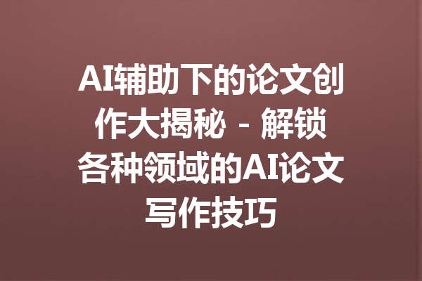 参考文章:AI写作神器助你轻松创作-高效自动写作的最佳选择本文标题:AI辅助下的论文创作大揭秘 – 解锁各种领域的AI论文写作技巧