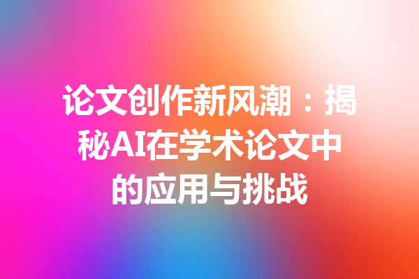 参考文章:AI写作工具大揭秘-最实用的在线平台与应用推荐本文标题:论文创作新风潮:揭秘AI在学术论文中的应用与挑战