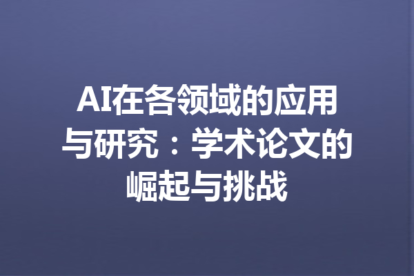 参考文章:AI写作的崛起与挑战-探索AI写作时代的机遇与难题本文标题:AI在各领域的应用与研究:学术论文的崛起与挑战