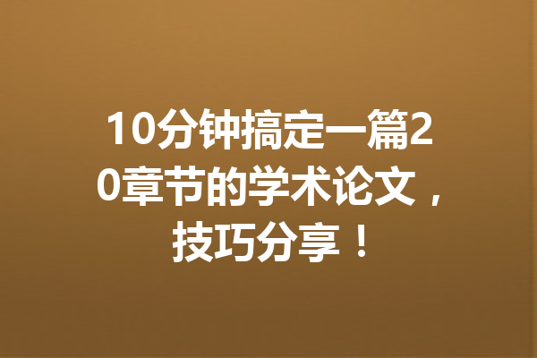 在学术研究的海洋中,撰写一篇高质量的论文往往让人感到无比压力,尤其是当你的目标是完成一篇包含20个章节的论文时。别担心!今天我将分享一些简单却有效的技巧,帮助你在短时间内轻松搞定这篇论文。不信?快来试试吧!