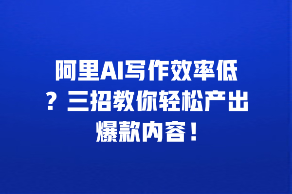 参考文章:AI大模型全面解析-深度了解各类AI大模型的应用与前景本文标题:阿里AI写作效率低?三招教你轻松产出爆款内容!