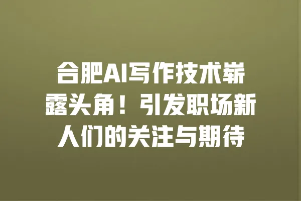本文标题:合肥AI写作技术崭露头角!引发职场新人们的关注与期待